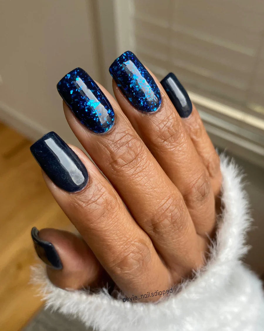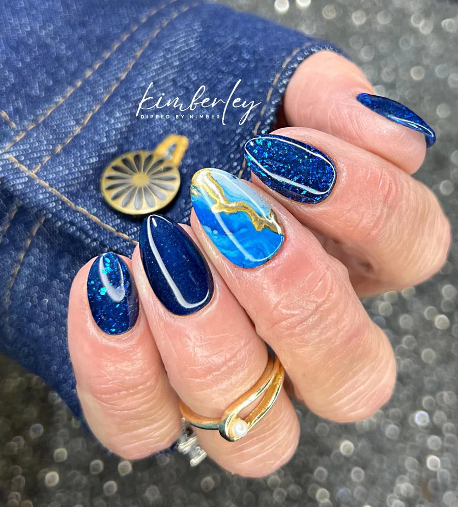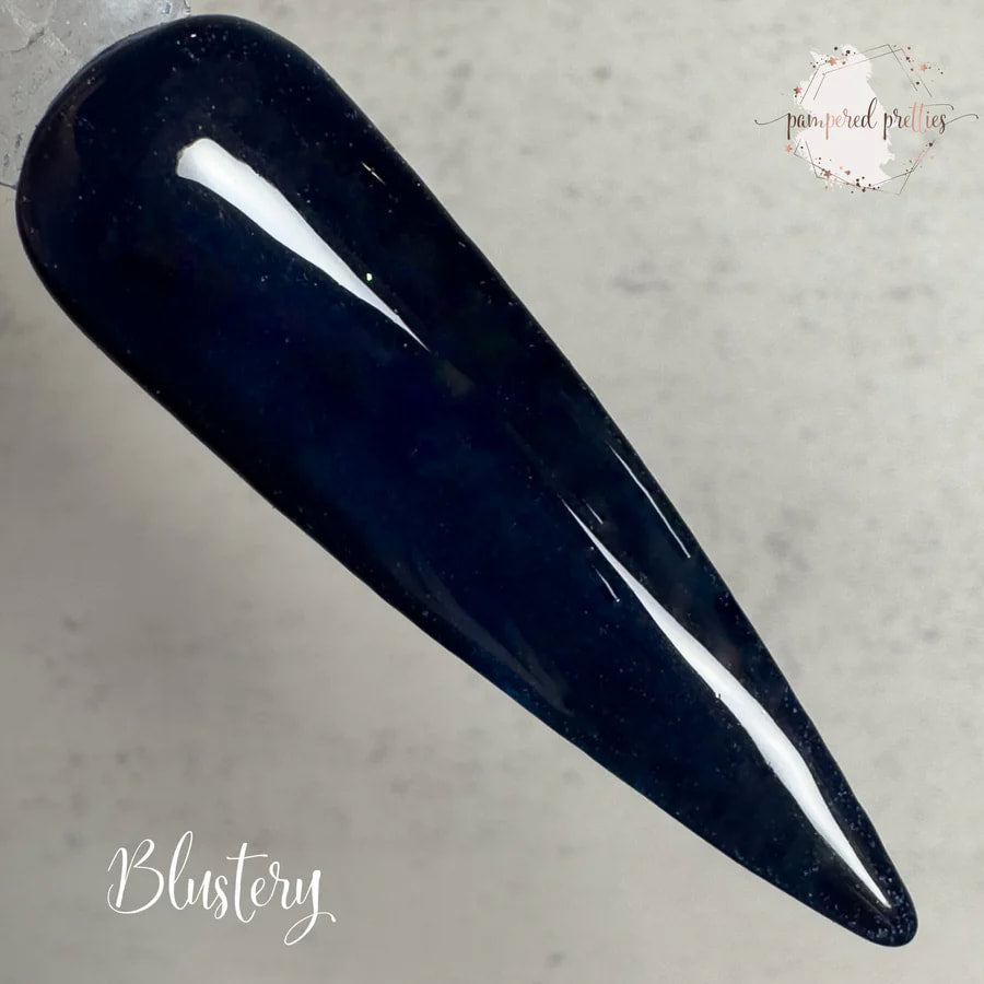 Blustery is a deep dark blue dip powder.